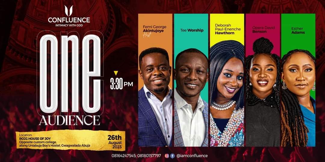 Confluence Ministries International is thrilled to present “One Audience” the 4th edition of her worship concert, graciously hosted by the highly esteemed Pastor Femi George Akintujoye. Set to take place on the 26th of August 2023, this remarkable event promises an unparalleled experience filled with breathtaking moments of praise and worship.