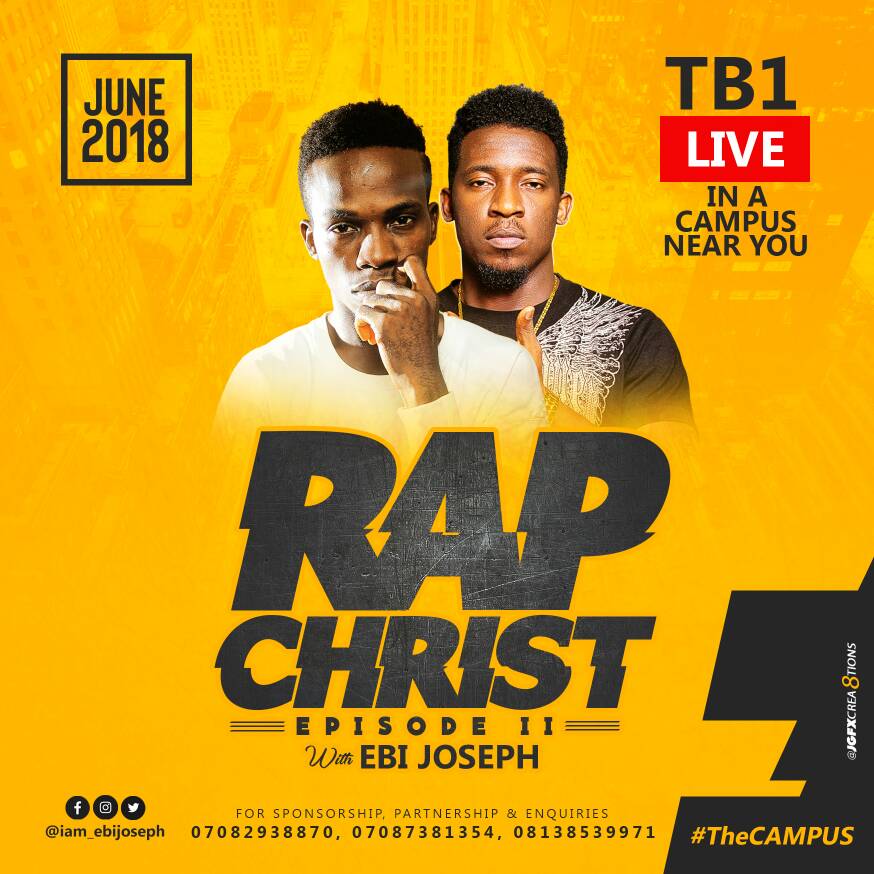 Anticipate Rap Christ 2 and expect TB1 Live in a Campus Near You.